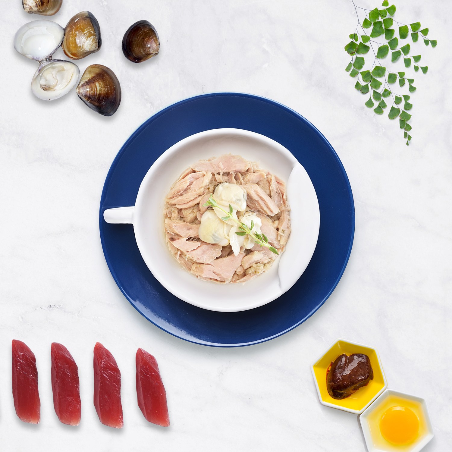 鮪魚蛤蜊:細嫩鮪魚搭配海味蛤蜊,豐富牛磺酸營養補給