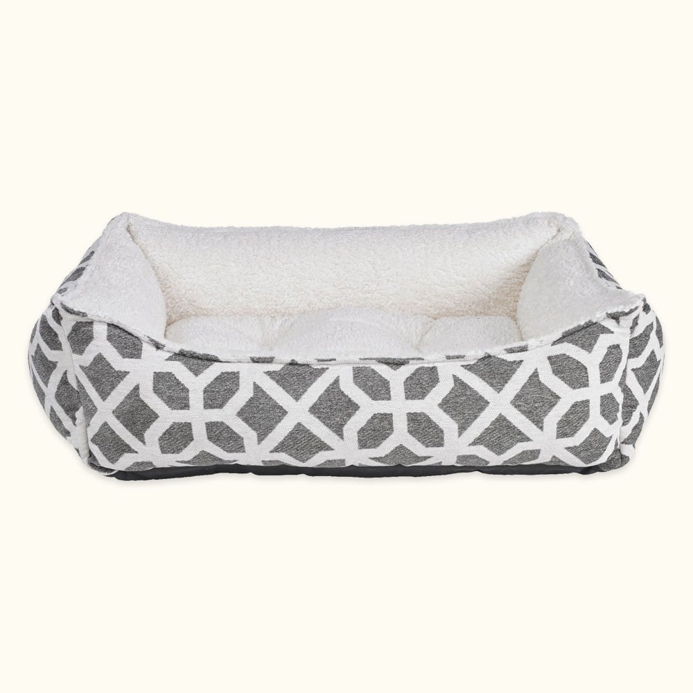 - 勺形設計,採用獨具設計感的雙色面料製作,兩側歐式收編裝飾質感UPUP!寬敞的尺寸可提供最大限度的睡眠面積;四面邊角也可以拿來饋頭,非常好進入,適合年老或是有關節炎的狗狗