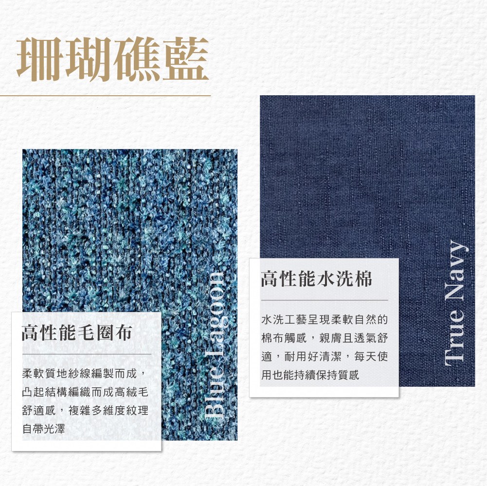 高性能雪尼爾:手感光滑柔軟,色牢度高,不縮水,超耐用。深海藍沉穩靜謐,展現高雅的休息時刻。