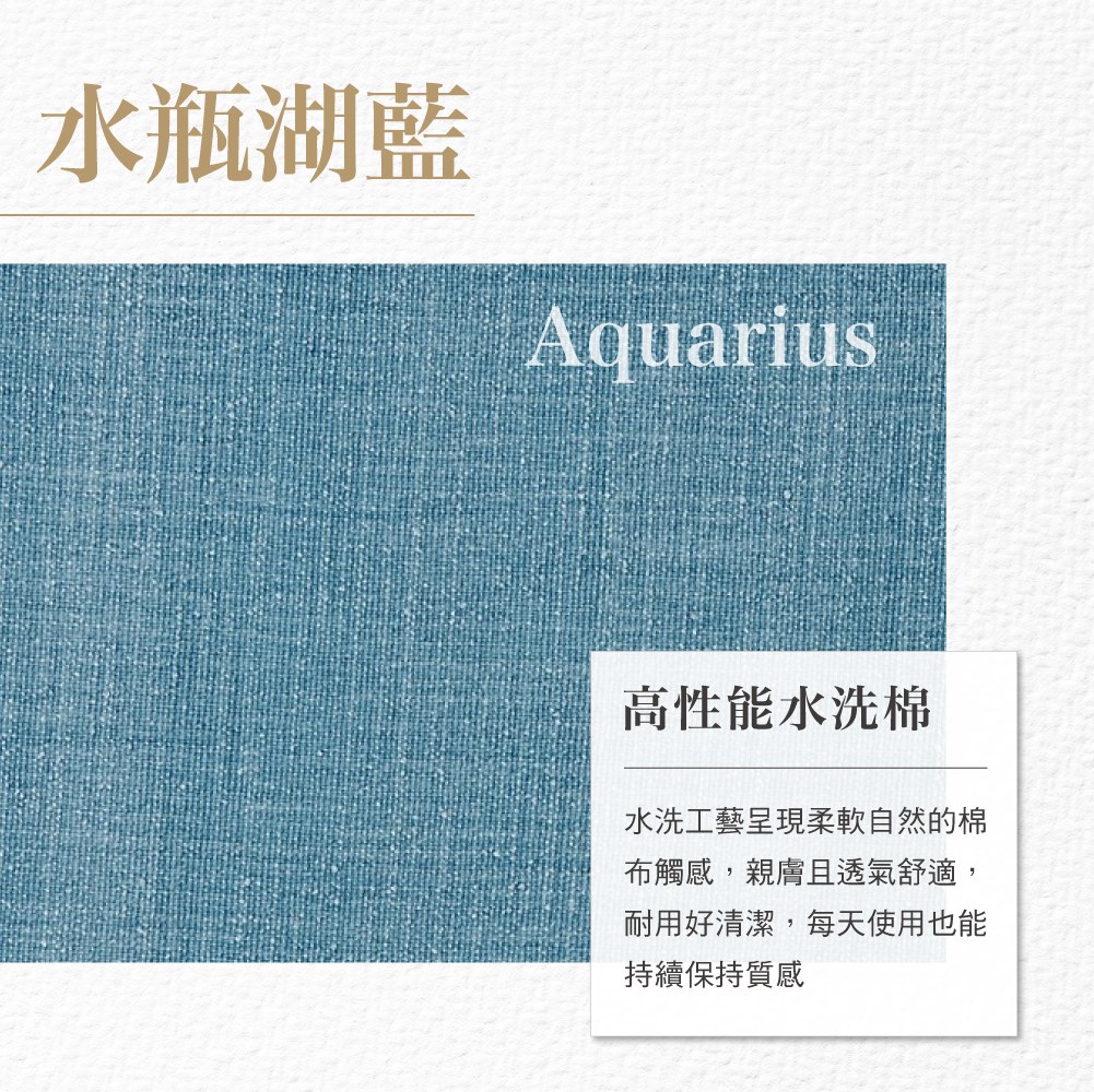 高性能水洗棉:細緻處理後呈現自然柔軟的手感與細膩織紋。布面親膚透氣,兼顧耐用與穩定性,在日常使用與反覆清洗後,仍能維持良好觸感與結構。